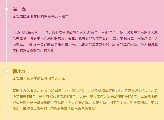 無錫産業(yè)發展集團有(yǒu)限公司工(gōng)會(huì) ![]() 無錫威孚高(gāo)科(kē)技(jì)集團股份有(yǒu)限公司工(gōng)會(huì) ![]() 中航工(gōng)業(yè)航空(kōng)動力控制(zhì)系統研究所(614所)工(gōng)會(huì) ![]() 一(yī)汽解放(fàng)汽車(chē)有(yǒu)限公司無錫柴油機(jī)廠(chǎng)工(gōng)會(huì) ![]() 無錫國融投資集團有限公司工(gōng)會(huì) ![]() 無錫地(dì)鐵(tiě)集團有(yǒu)限公司工(gōng)會(huì) 聽(tīng)了(le)習(xí)總書(shū)記振奮人(rén)心的(de)工(gōng)作(zuò)報(bào)告,錫城(chéng)職工(gōng)燃了(le) ![]()