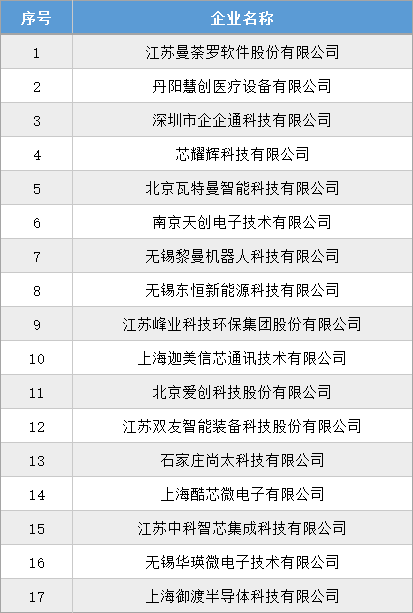 根據工(gōng)信部統一(yī)部署,江蘇省工(gōng)信廳于2024年(nián)9月(yuè)2日(rì)™發布了(le)《關于江蘇省第六批專精特新“小(xiǎo)巨人(rén)”企業(yè)和(hé)第三批專精特新“小(xiǎo)巨人(rén)”複核通(tōng)過企業(yè)名單的(de)公示》,其♠中江蘇曼荼羅軟件(jiàn)股份有(yǒu)限公司、丹陽慧創醫(yī)療設備有(yǒu)限公司、深圳市(shì)企企通(tōng)科(kē)技(jì) 有(yǒu)限公司等17家(jiā)創投集團被投企業(yè)入選第六批專精特新“小(xiǎo)巨人(rén)”企業(yè)≥。